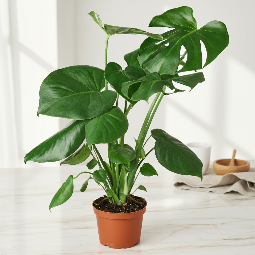 Shop NowA tropical icon with lush split leaves that bring instant jungle vibes indoors. Loves bright, indirect light and weekly watering once the top inch of soil dries. Fast-growing and full of personality — a true statement plant for any space.